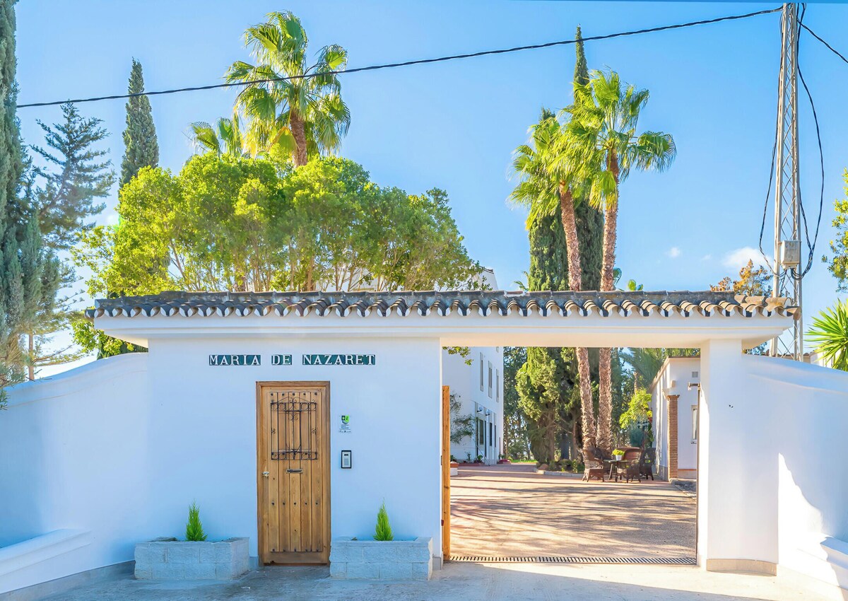 Villa Nazaret es una auténtica finca andaluza en Alhaurín el Grande, rodeada de campos de olivos y con vistas a la sierra. Ofrecemos habitaciones dobles con baño privado en régimen B&B, perfectas para parejas y viajeros que buscan descanso y autenticidad. A solo 30 minutos de la Costa del Sol y de Málaga capital, con acceso directo a rutas de senderismo y a los pueblos blancos.